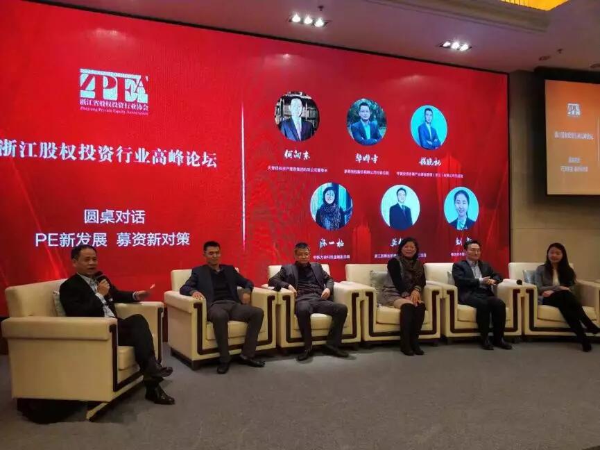 在圓桌沙龍環(huán)節(jié),我司何董作為“PE新發(fā)展、募資新對(duì)策”沙龍主持人對(duì)話中銀投資浙商產(chǎn)業(yè)基金總經(jīng)理錢曉楓、浙商創(chuàng)投行政總裁華曄宇、中新力合副總裁陳一梅、浙商創(chuàng)新資本總經(jīng)理龔伯勇、